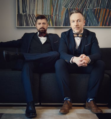Oickle created the first bow tie in 2014 for himself to wear at an exhibition of his fine art. People clamoured to get a "Nœud Foncé" and by January 2015, Guillotine was in full swing and the demand had exceeded the supply. Now, Guillotine bow ties and accessories are treasured in the high fashion circles of Montreal, New York, and beyond. This enthusiasm is due to the quality of materials used and the attention to detail in the manufacturing of the accessories, all done completely by hand.