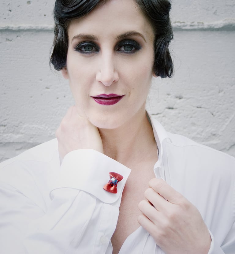 Guillotine (Winner of the 2016 Phénicia Award for Innovation), designed and created by Montréal artist Danniel Oickle, began as a collection of unique haute couture accessories fashioned completely by hand for the distinguished person who simply wants killer style. Each piece is a one-of-a-kind wearable architectural piece, individually hand-sculpted of fine polymer and finished with repurposed vintage silk.